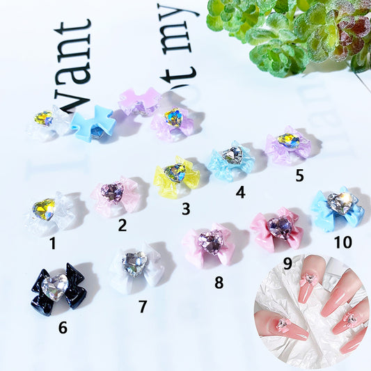 【ND02】リボンダイヤハート/ダイヤモンド/キラキラ/ストーン/ネイルパーツ/ラインストーン/DIY/デコパーツ
